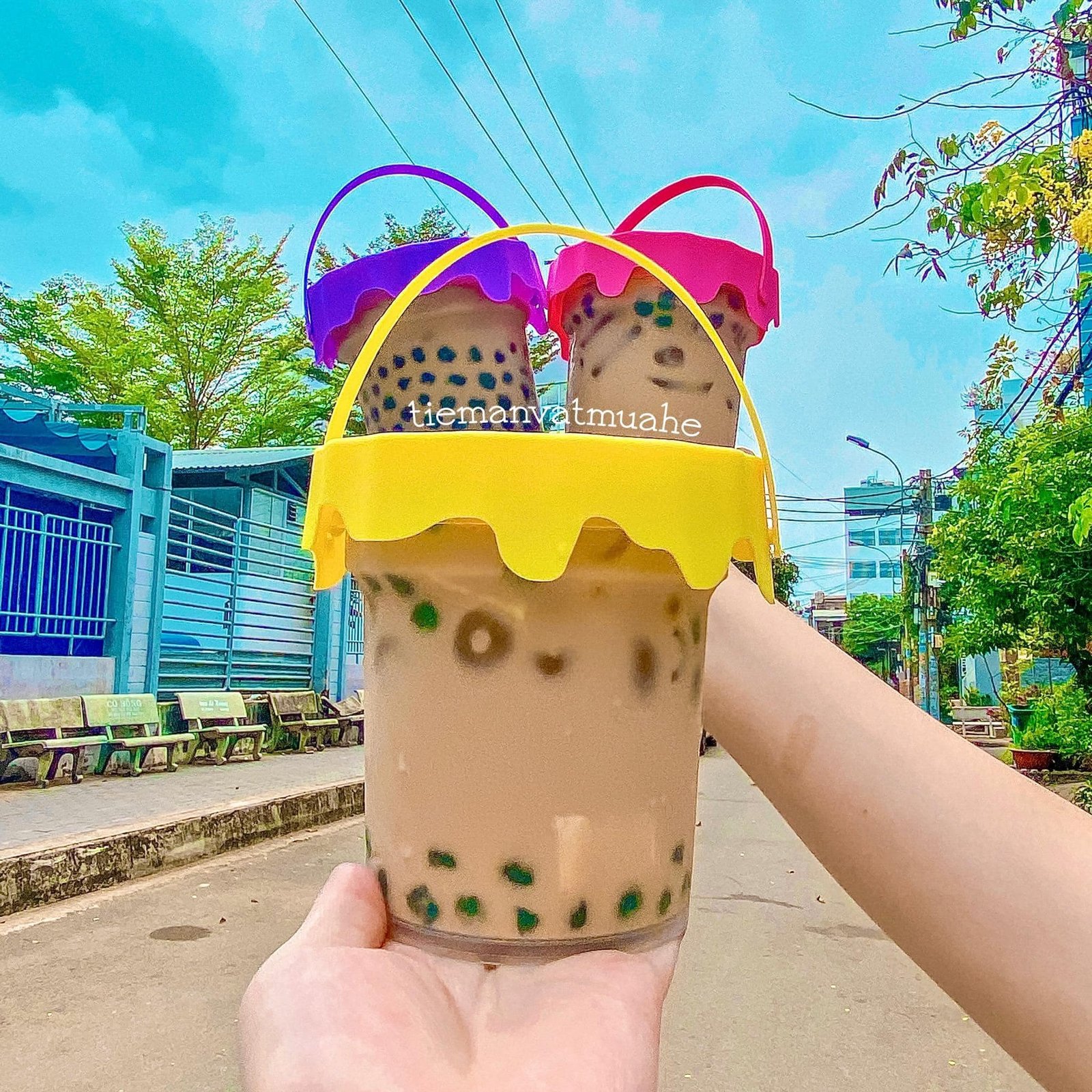 Tiệm này tiếp tục giới thiệu với khách xê-ri Trà sữa đựng trong chiếc xô xinh xắn kìa . Đãm bảo sự cute này sẽ làm gục ngã trái tim của mấy baby iu trà sữa từ ánh nhìn đầu tiên hí hí 😆😆