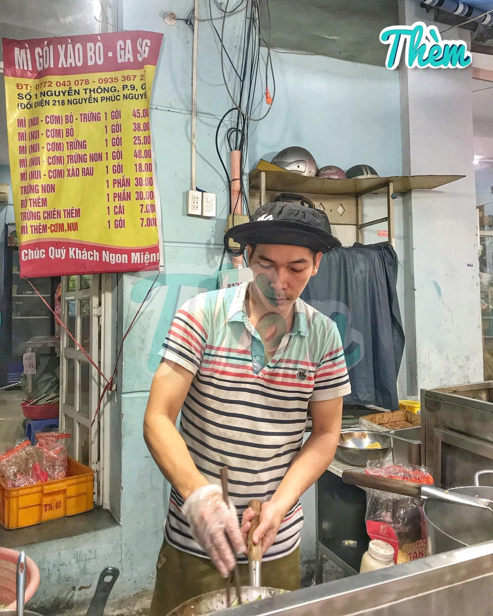 Mì Gói Xào Bò Ga có thâm niên hơn 30 năm, khá nổi tiếng với hội cú đêm ở quận 3. Trước quán bán trong Ga nhưng sau dịch thì dọn ra số 1 Nguyễn Thông.