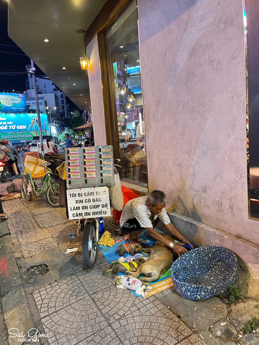Chó có bao giờ chê chủ nghèo. Ai thương nó sao, nó đồng hành theo như vậy. Sự hiền lành của ông còn lan toả đến mỗi người đi ngang. Thật mừng khi nhiều người đến ủng hộ ông hơn để cả ông và mấy đứa nhỏ cho chỗ che nắng che mưa đàng hoàng…