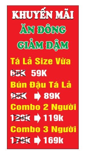 “GIẢM GIÁ QUÁ ĐÔ từ nay cho đến 31/7 … Bún đậu TÁ LẢ full topping chỉ 89Ka …