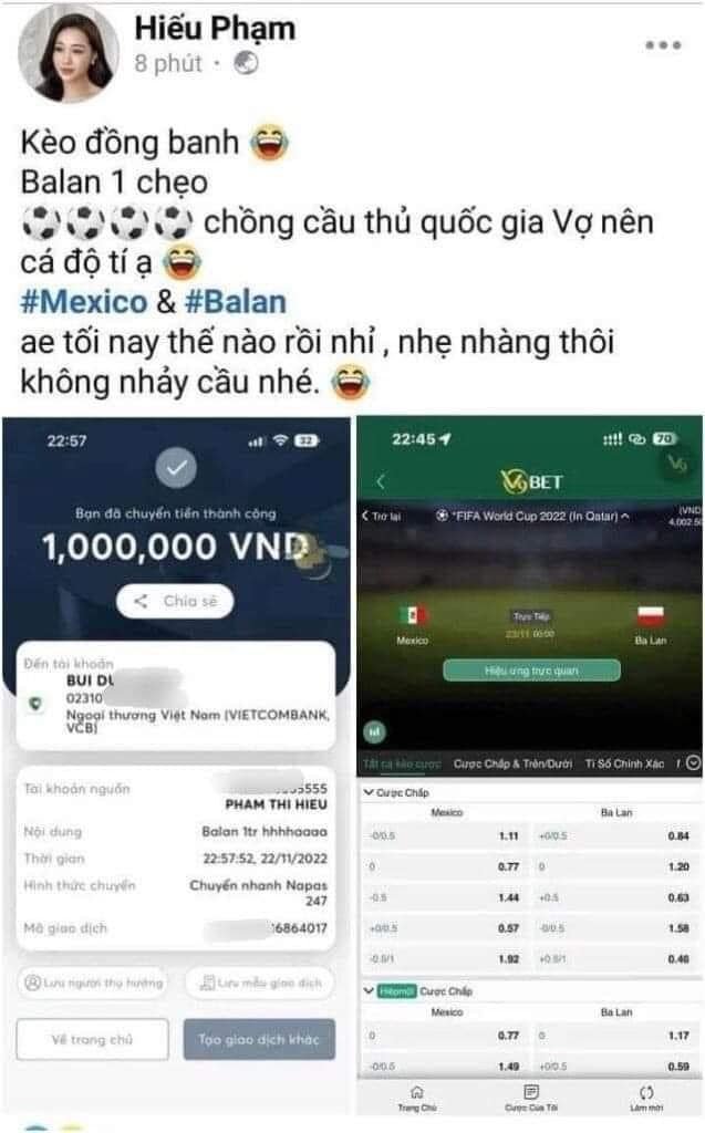 NGƯỠNG MỘ TINH THẦN YÊU BÓNG ĐÁ CỦA VỢ TUYỂN THỦ QUỐC GIA HỒ TẤN TÀI 🐧 Không chỉ yêu bóng đá, chị còn tiện tay khoe luôn mấy kèo độ của mình lên mạng. Không dừng lại ở đó tiền vệ Nguyễn Trọng Đại cũng vào tương tác rủ cô tăng kèo độ. Chỉ ít phút sau thì bài đăng được gỡ nhưng nhanh sao bằng dân mạng Cre: Trần Hương