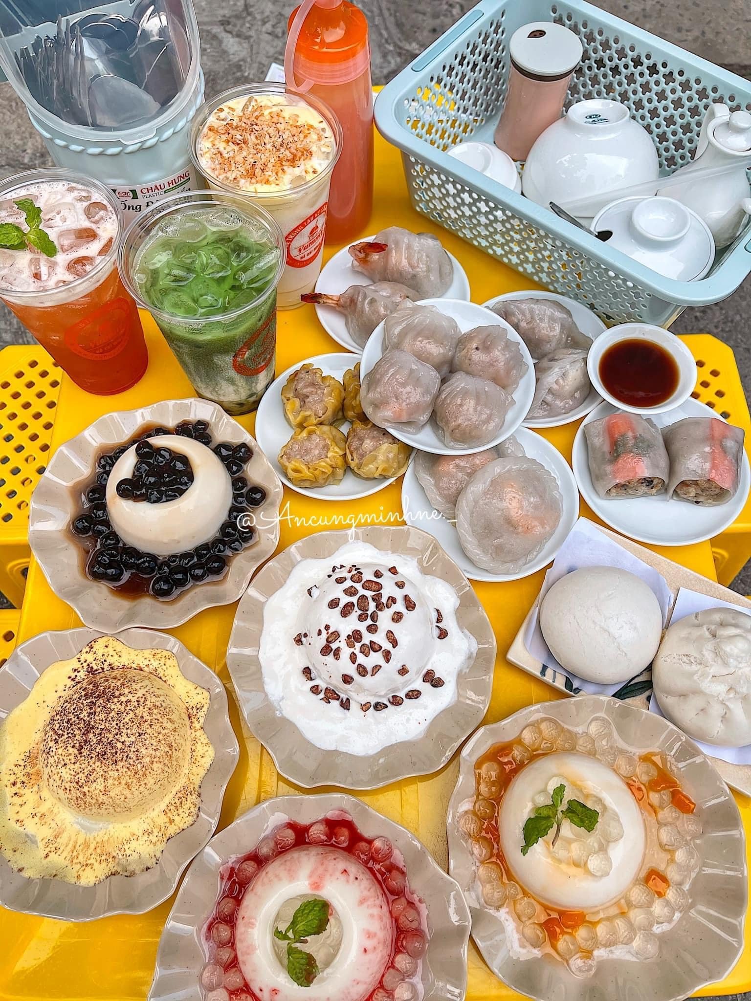 Má ơii cái menu Tàu Hủ bên này tui nhìn phát mê ngay á, order nào là Tàu Hủ Singapor Truyền Thống – Vị Xoài – Vị Dâu – Sốt Kem Trứng rồi cả Sốt Kem Phô Mai Đậu Đỏ. Vị nào cũng ngon cũng bắt miệng hết trơn mà giá rẻ cực mng ơiii, tuii mê xĩu cái em Xoài thơm ngonnn – tàu hủ núng na núng nínhh mát mát lạnh lạnh beo béo ăn cái phê liền =)))))) 💯 Trà Sữa – Trà Chanh cũng oke laaa lắm nhaa. Bên này có bán cả Dimsum siu chất lượng, đồng giá 29k/ phần mà cực ú lun á – Must tryyy cực mạnh cho team Bình Tân nhoa nhoa 😄😄