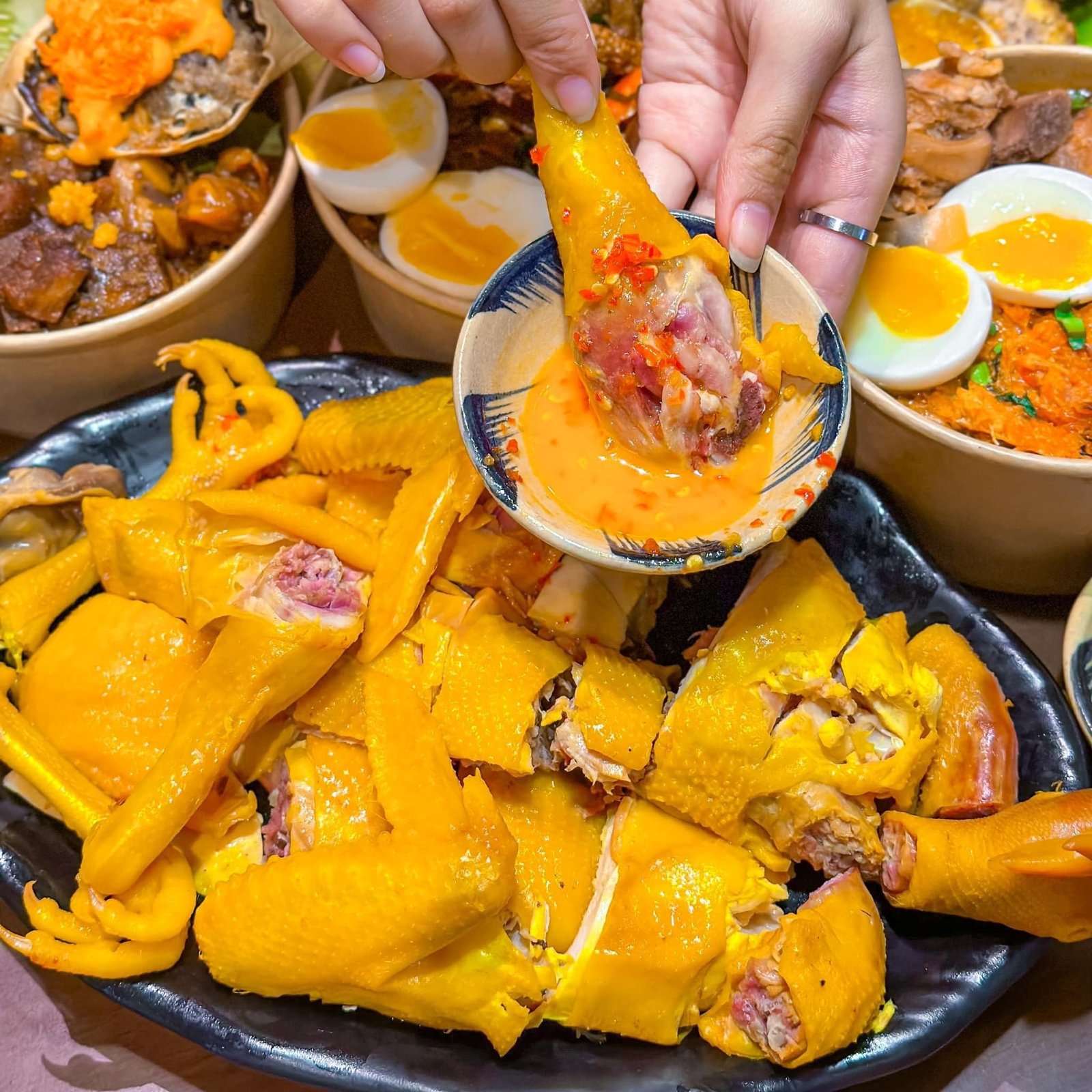 Má uii thấy con gà ủ muối là biết chất lượng luôn á nước chấm ngon xỉu , có nước chấm xá xíu đỉnh lúm 270 Ka 1 em như hình, đẩy nhẹ vài ống cơm lam dẻo dẻo qá dữ.