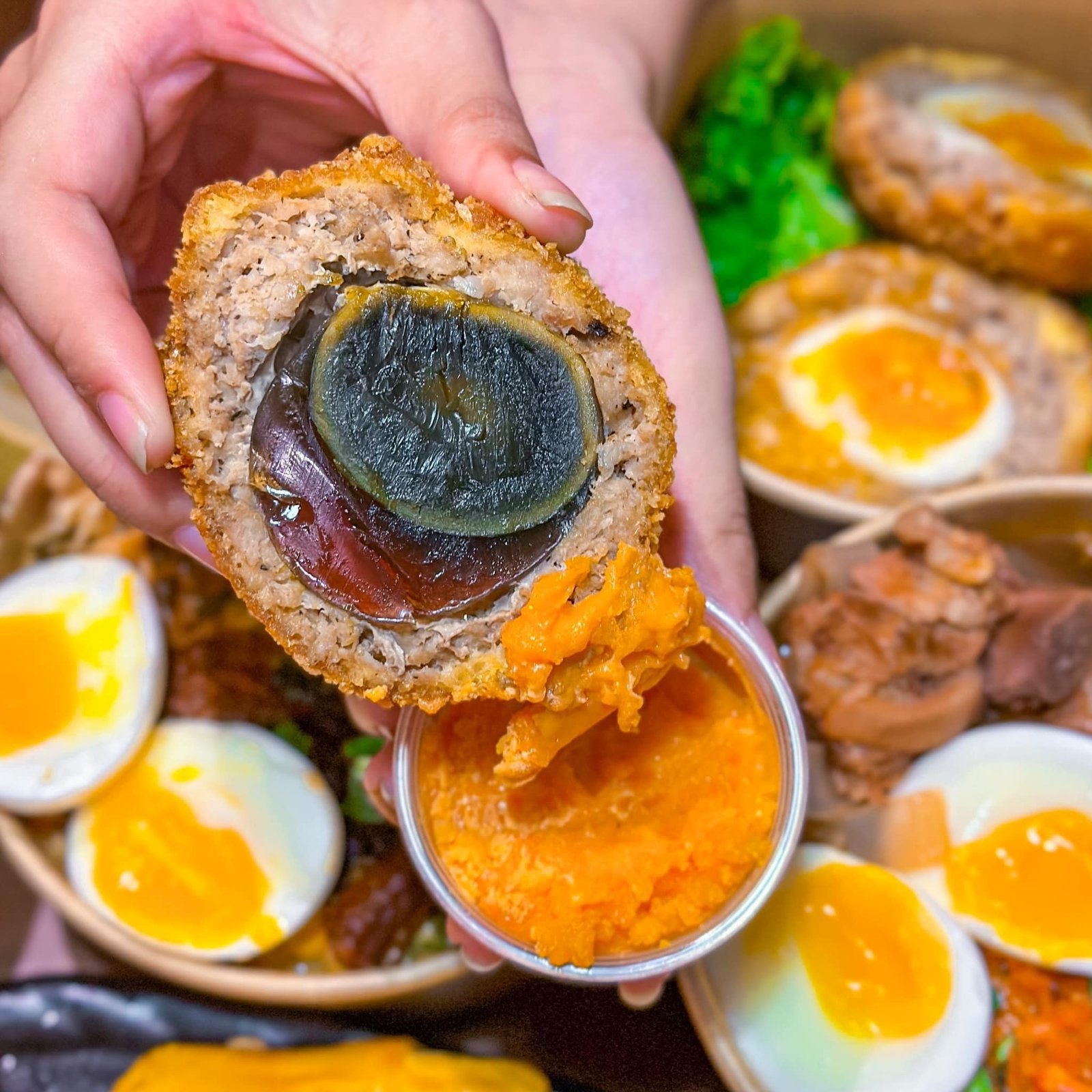 Giờ mới tìm ra được 1 quán 9981 món ăn độc lạ, mà nhìn phát thèm. U mê cái trứng thịt xù lòng đào lớp ngoài giòn bên trong béo 38 Ka. Cái thịt xù bắc thảo cũng ổn áp hổng kém tuỳ vị người thích này, thích kia à. 🤩🤩🤩