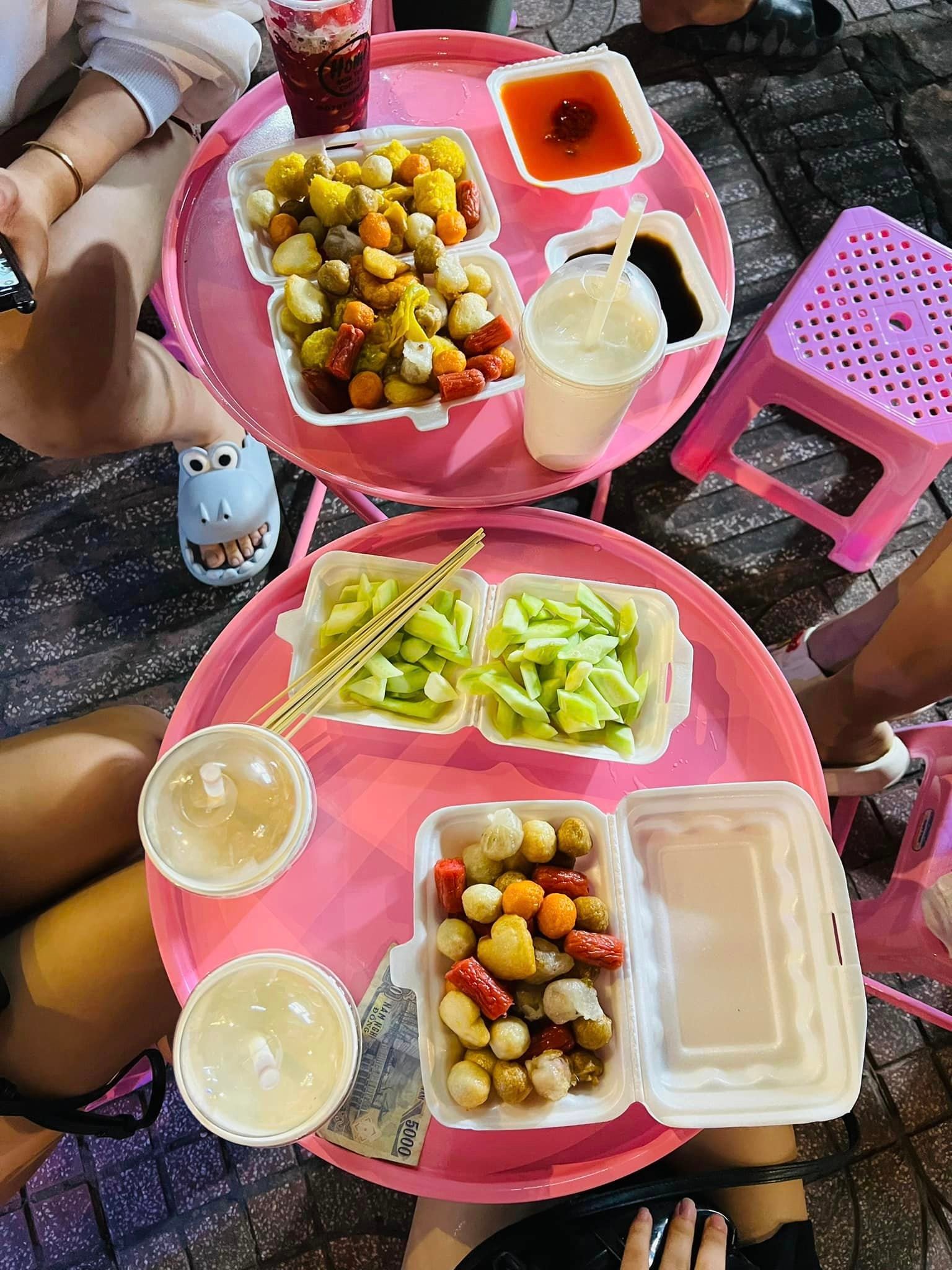 Chỗ này vỉa hè mà thấy rất sạch sẽ á mấy bồ, 1 xiên 5-10k thôi nè :)) có dưa leo ăn đỡ ngấy, tương ớt tương đen sốt trộn đều mlemmm lắm 🤣🤣🤣