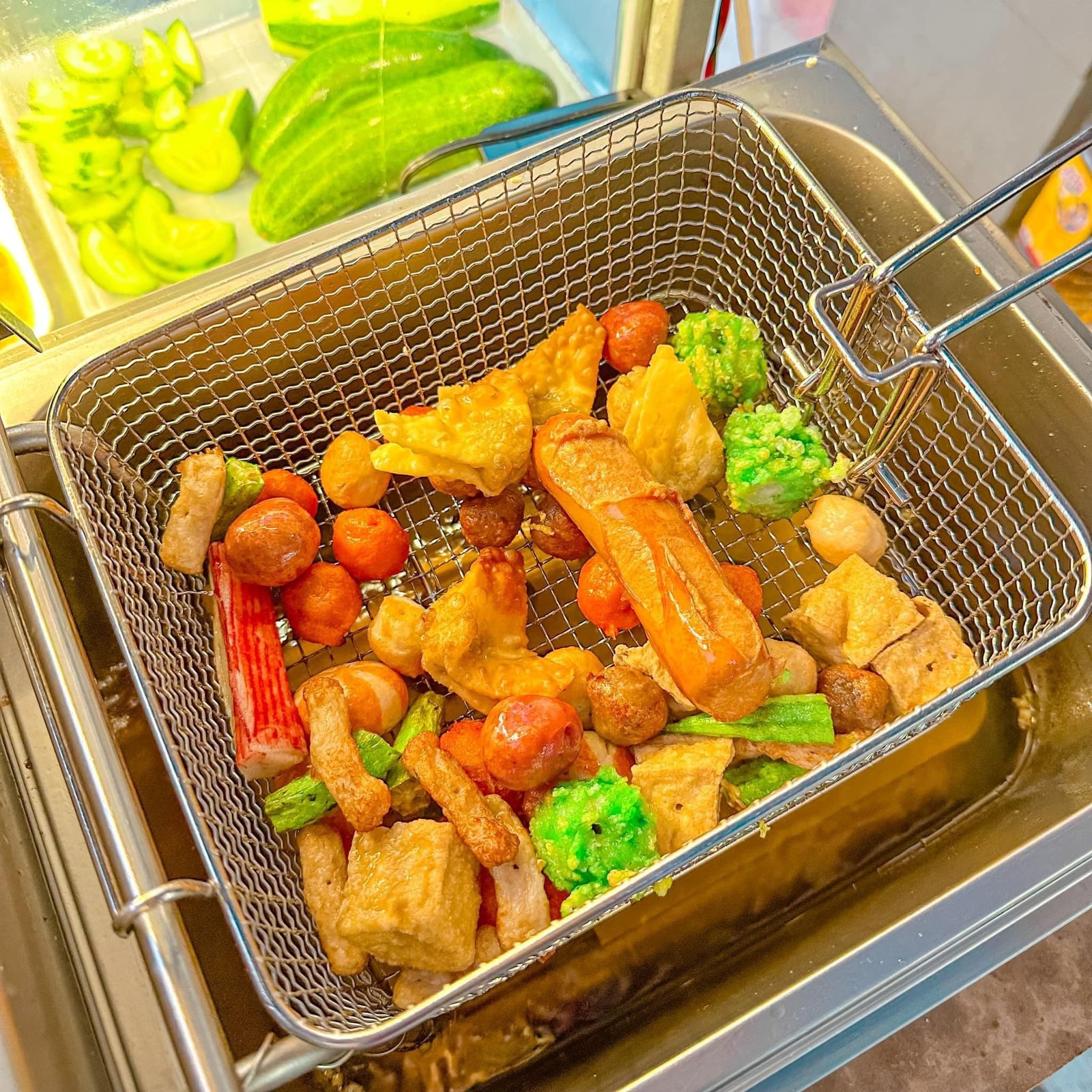 👍Cá viên chiên đa dạng chắc ú, có cả há cảo chiên nữa, mặn mặn ngọt ngọt hoà quyện với nhau thấm gia vị thơm phức mùi thơm phức!!! chấm thêm xíu tương ớt do chính chủ quán làm nó khác bọt liền 🎉